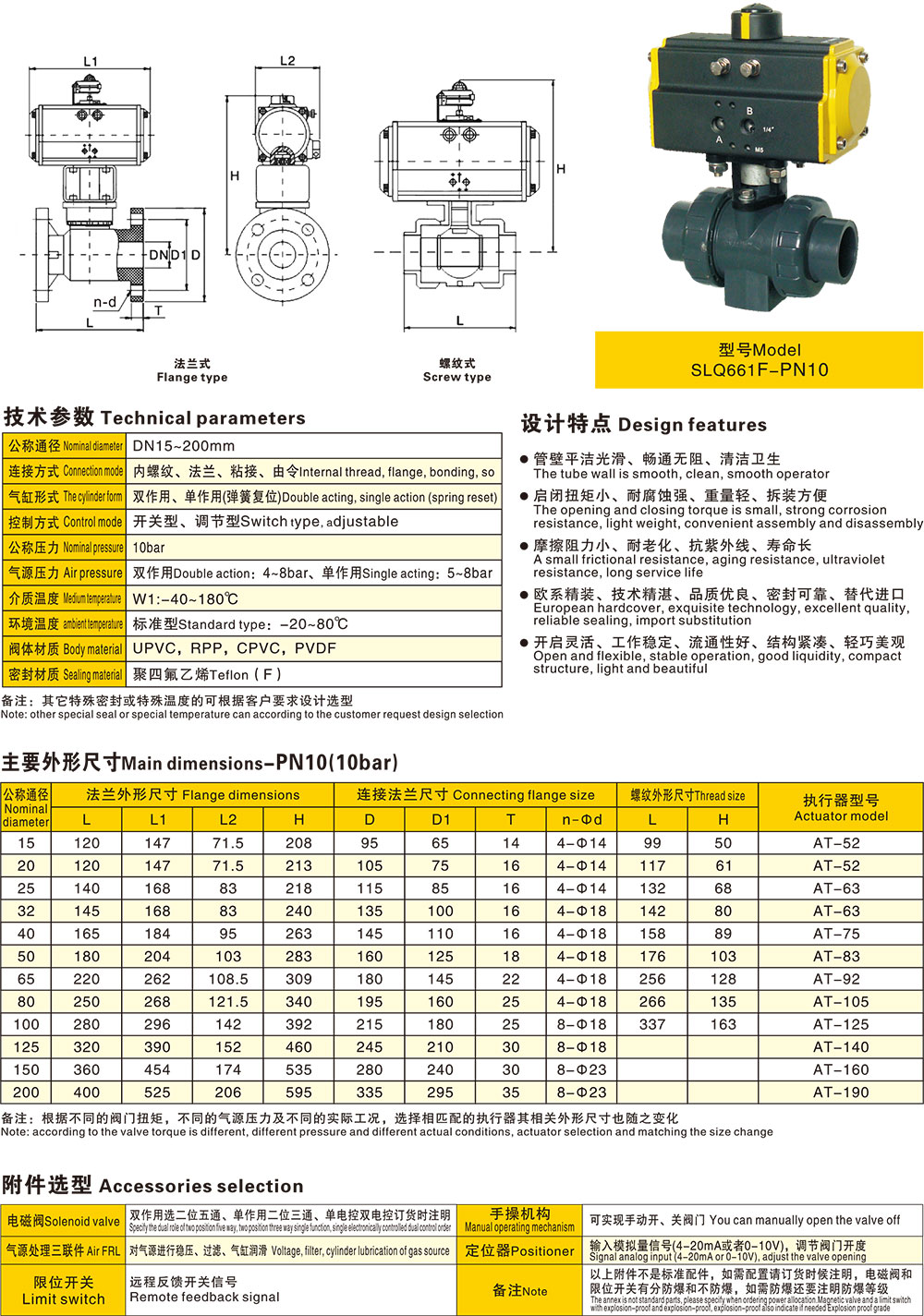 的管壁平洁光滑,介质流通畅通无阻,没有残留,清洁卫生;PVC气动球阀的开启和关闭所需的扭矩小,重量很轻,同时耐腐蚀性很强,且拆装很方便;PVC气动球阀的摩擦阻力小,耐老化能力强,具备抗紫外线的能力,因此使用寿命很长;PVC气动球阀是欧系精装,技术精湛、品质优良,同时密封可靠,可以替代进口阀门;